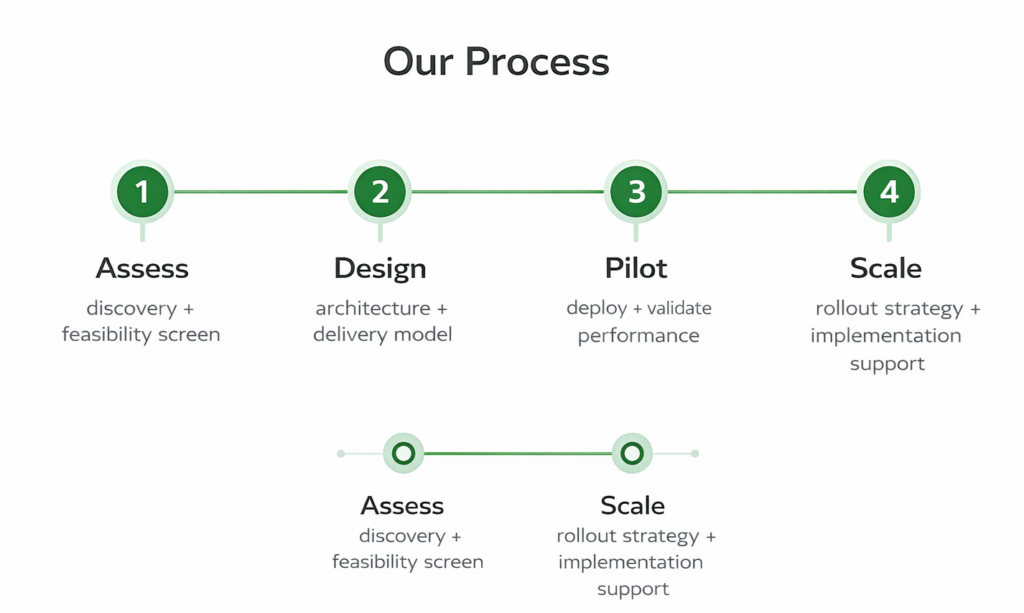 Share your challenge and context, we’ll propose the fastest route to feasibility, pilot, and deployment.